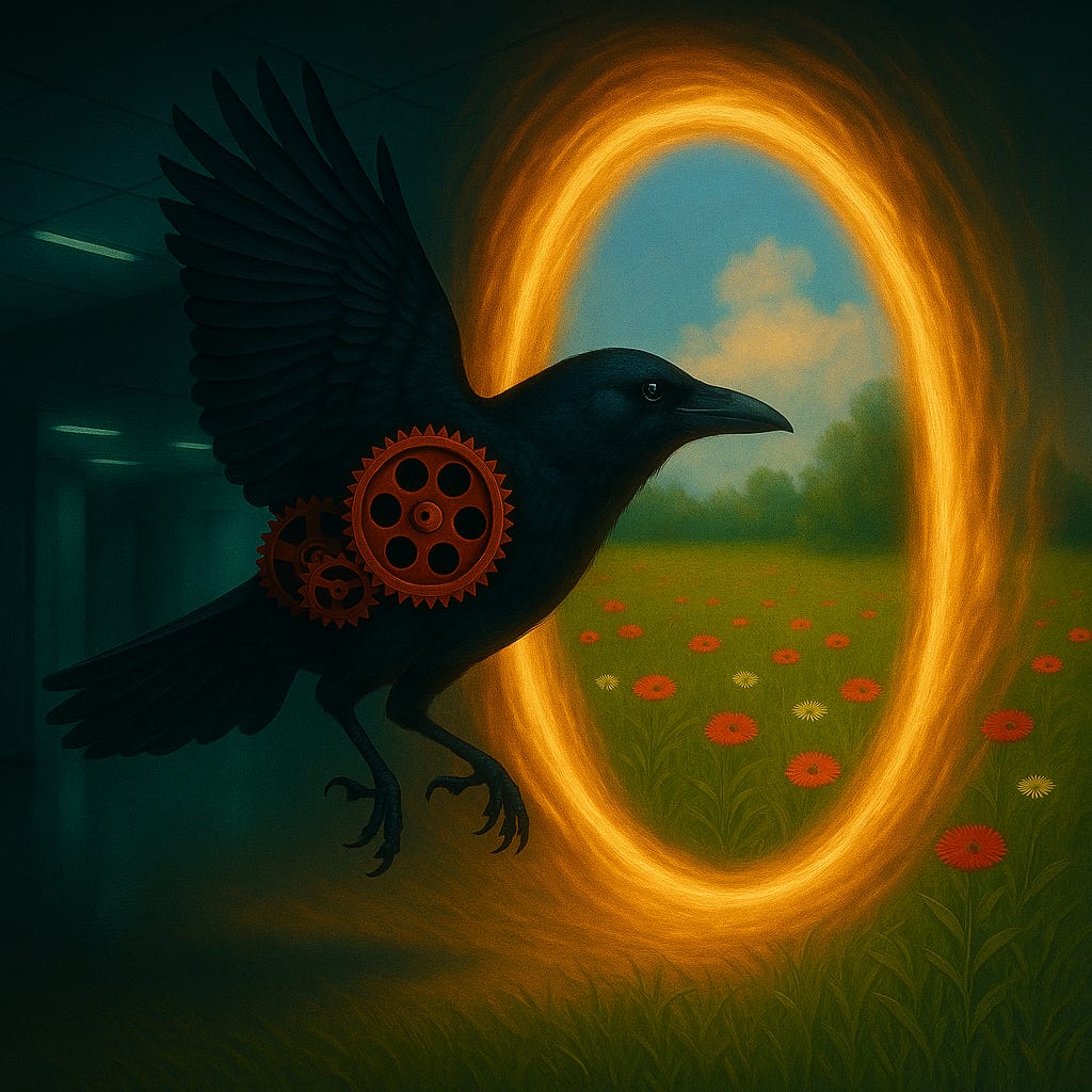 And then the twist: the shimmering clock face they had passed through was not a gate at all, but a mirror. Not future, not past - refractions of choices yet to be made.