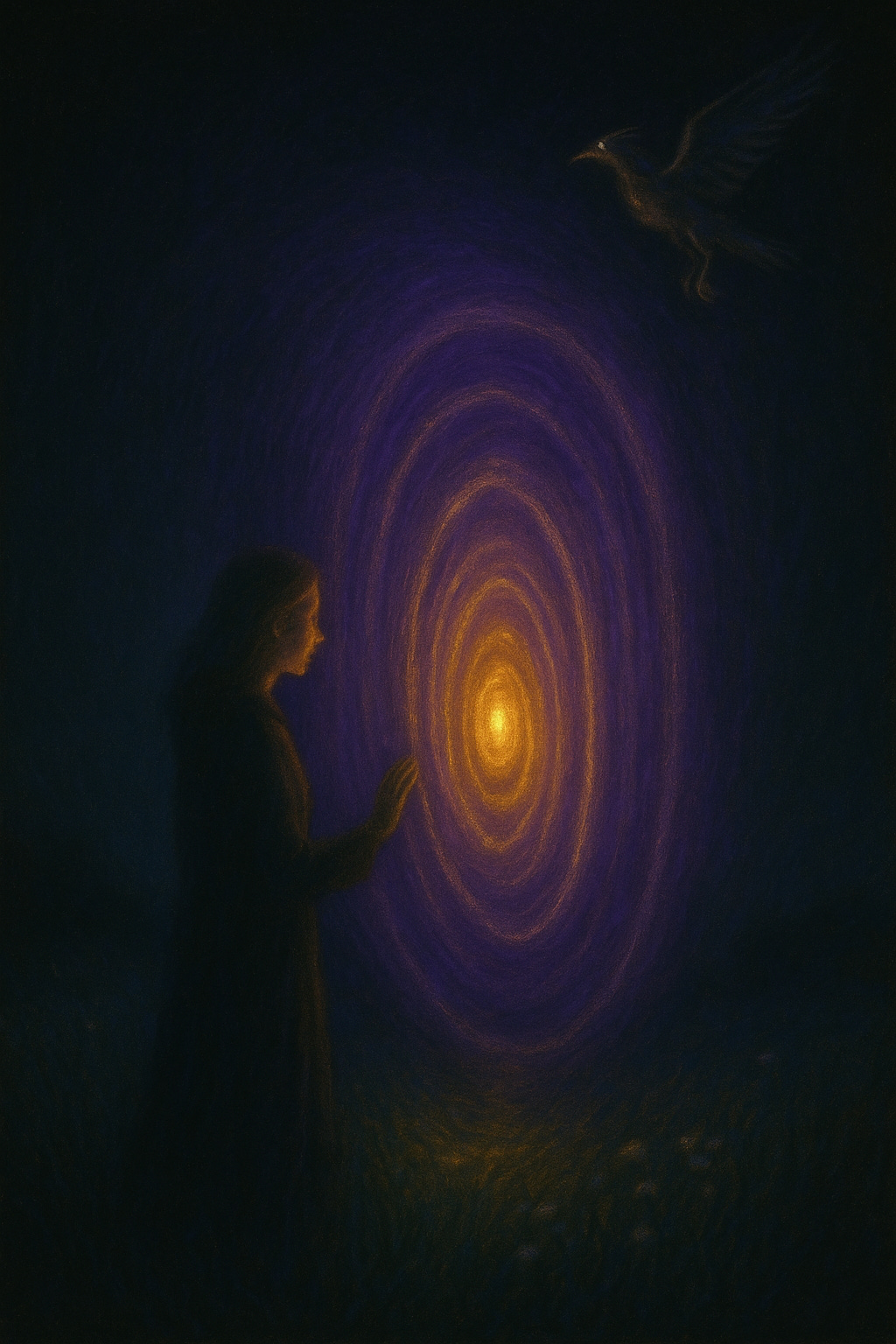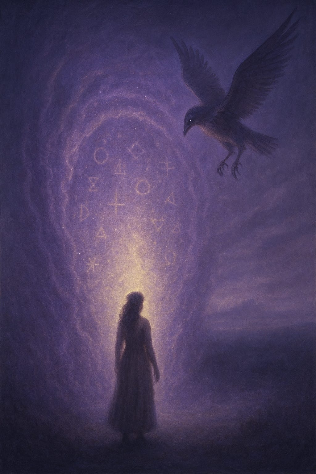 In its depths, faces rippled: the guard, the father, the girl, even Stark’s avian shape. All of them flickered, interchanging places like pieces of a single thought trying to remember itself. The woman understood then what the Gate was showing her: not where she was going, but what had already begun to wake.